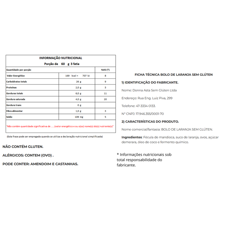0 Avaliações de Bolo de Laranja Sem Glúten - 300g - Donna Asta