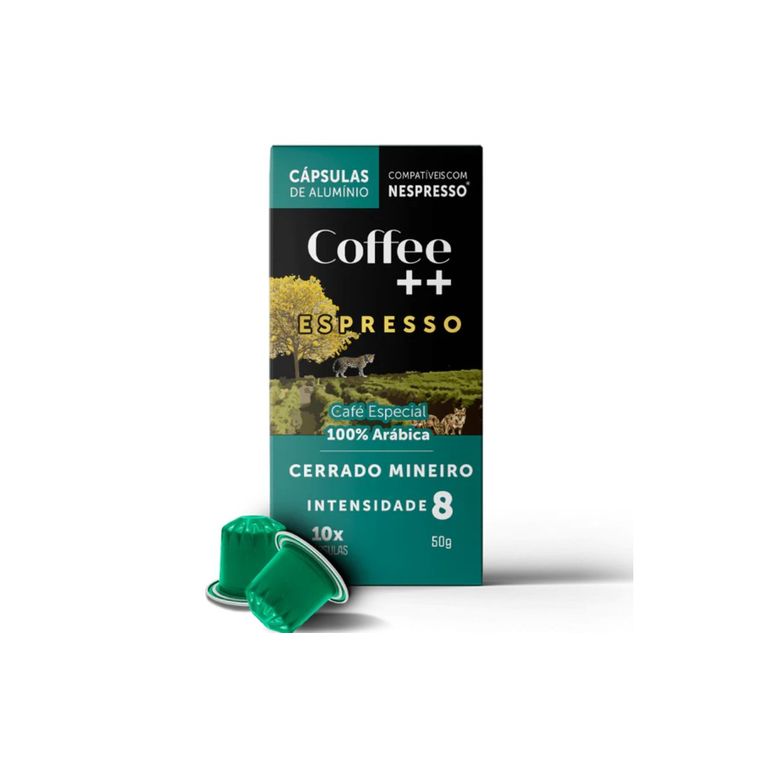 Cápsula Cerrado Mineiro COFFEE ++. Corpo encorpado, acidez suave e notas de chocolate. Compatível Nespresso®.