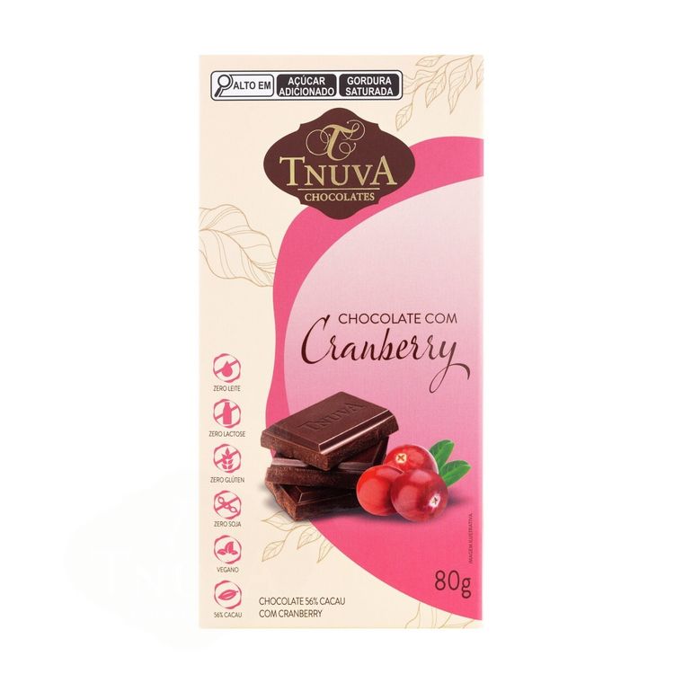 Chocolate 56% Cacau vegano, Zero Leite, Zero Glúten, com pedaços de Cranberry.