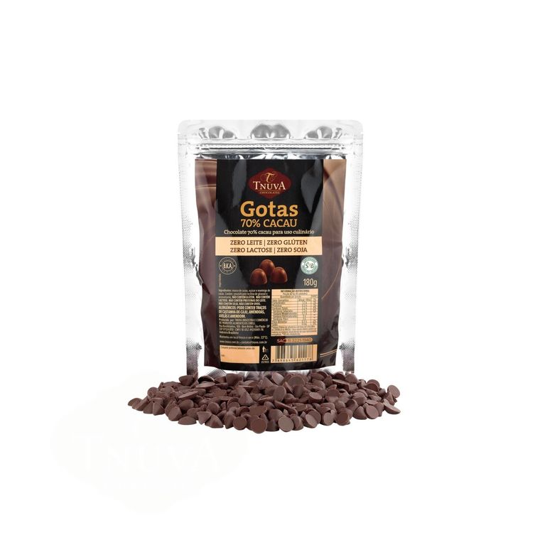 Gotas Chocolate 70% Cacau Culinário (180g): Sabor Intenso Vegano.