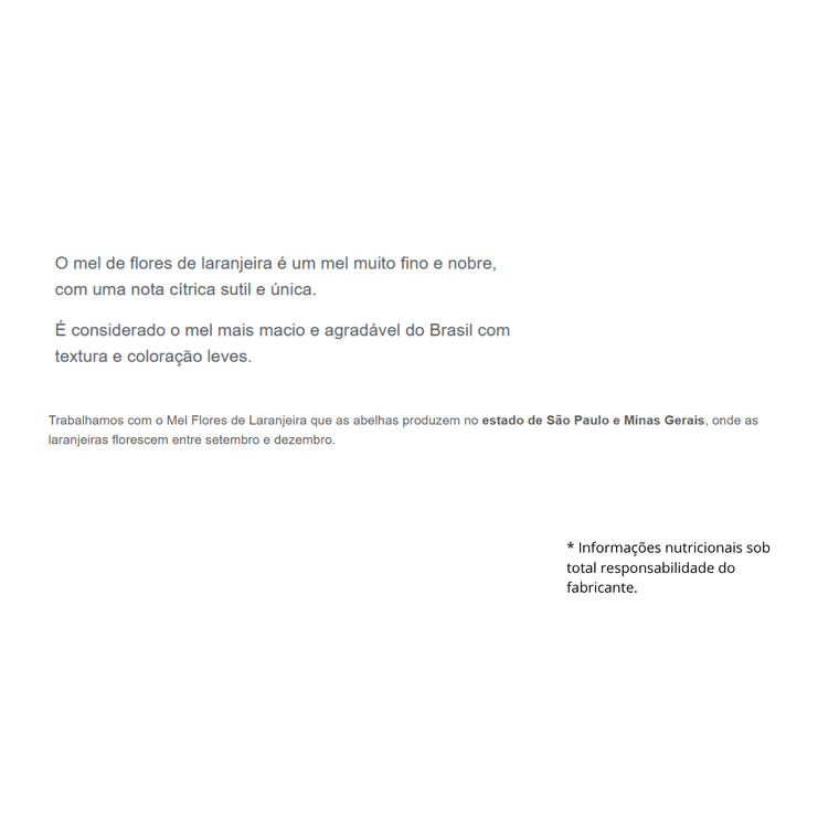 Mel nobre e macio do Brasil, com sabor agradável e sutil nota cítrica. Textura e coloração leves.