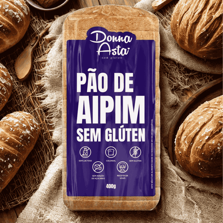 Pão de Aipim Sem Glúten/Açúcar/Lactose - 400g - Donna Asta